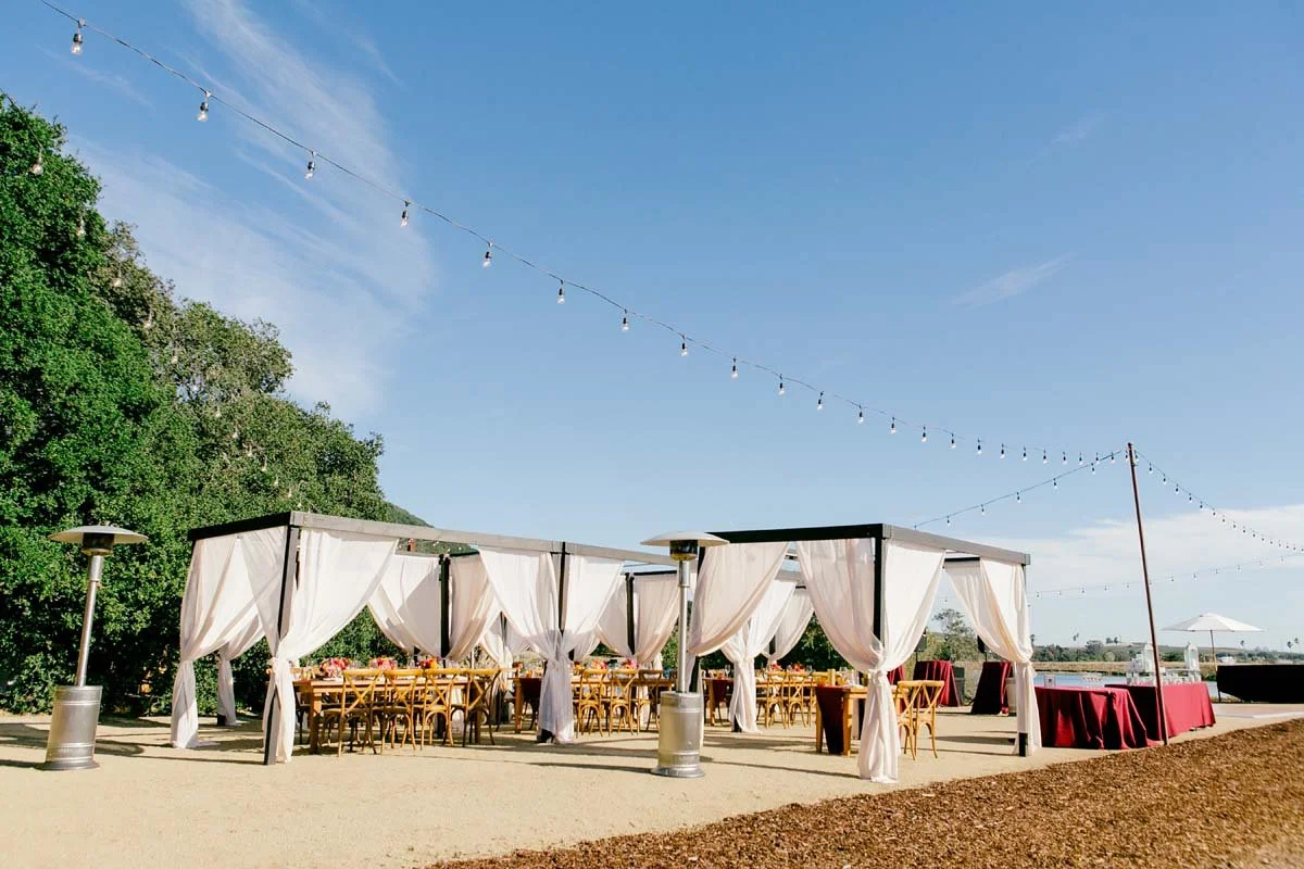We don’t have snow here in wine country, but we still have seasons. June, July, and August can have heat waves and you’ll find yourself reaching for another glass of Rose. However, even on the hottest days when the thermometer is over 100 degrees, once the sun goes behind the hills the temperature drops and is perfect for a dance party. For summer, I always recommend renting plenty of patio umbrellas, providing parasols for the ceremony (easily purchased ahead of time on Amazon), and amenity baskets in the bathrooms that include sunscreen. The cooler months are mid-October through mid-April and you will definitely want a wedding venue with an indoor space for a rain and cold weather plan or a tent with heaters.