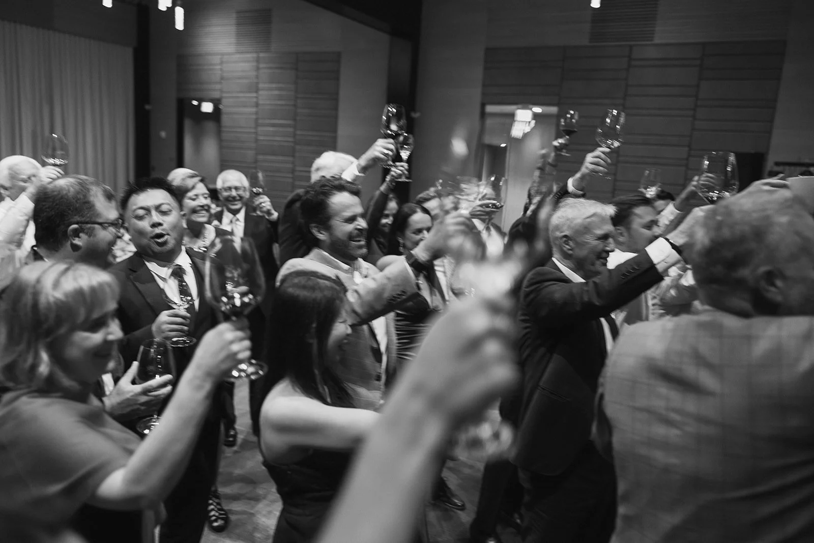 Glasshouse Barn – dinner and dancing - Modern, elegant reception space with floor-to-ceiling windows framing vineyard and hill views. The Glasshouse Barn is the largest event space. This spacious and contemporary barn is ideal for weddings of any size, combining modern elegance with a warm atmosphere. The space is paired with Glasshouse Terrace, allowing for flexible arrangements to perfectly match your wedding vision and needs.